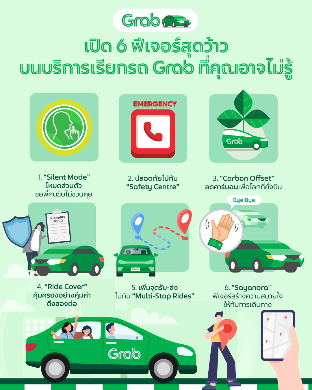 แต่รู้หรือไม่? ว่าบริการเรียกรถของแกร็บมีฟีเจอร์เสริมต่างๆ ที่ถูกคิดค้นและพัฒนาเพื่อให้ผู้ใช้บริการได้รับประสบการณ์พิเศษ ที่ไม่เพียงตอบโจทย์ในด้านความสะดวกสบาย แต่ยังสร้างความอุ่นใจในทุกเที่ยวการเดินทางด้วย และนี่คือ 6 ฟีเจอร์ไม่ลับ! ที่คุณลองแล้วต้องร้องว้าว
