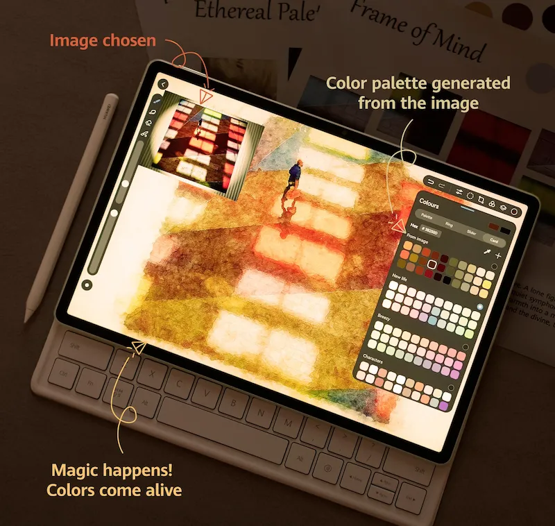 ครีเอเตอร์สามารถปลดปล่อยจินตนาการอย่างอิสระมากกว่าเดิม ด้วยประสบการณ์การใช้แปรงพู่กันที่หลากหลายและสมจริง โดยเมื่อใช้ HUAWEI M-Pencil วาดเขียนบนแอปฯ ซึ่งนอกจากการบีบเพื่อเปิดเมนูลัดแล้ว ยังสามารถหมุนปากกา (Rotate) เพื่อปรับทิศทางหัวแปรงให้เป็นเส้นหนา และเส้นบางได้เหมือนการใช้ปากกามาร์กเกอร์ หรือพู่กันวาดจริง และแตะสองครั้ง (Double-tap) เพื่อเปลี่ยนอุปกรณ์แบบทันใจ เมื่อต้องการเลือกสีที่ตรงกับภาพ สามารถทำได้ง่ายๆ ด้วย Intelligent Color Card โดยจิ้มสีจากภาพมาเก็บไว้ในการ์ดสี โดยมีแปรงหลากหลายกว่า 150 แบบ ที่มาพร้อมพารามิเตอร์ที่ปรับแต่งได้กว่า 80 รายการ ตั้งแต่แปรงสีน้ำมัน 3 มิติ (3D Oil Brush) ไปจนถึงแปรงแบบทรูคัลเลอร์ (True-color Brush) แปรงสีน้ำ และแปรงกระจายสีเป็นต้น