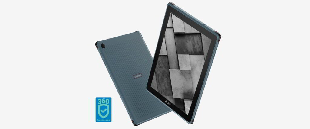 ได้รับการพัฒนาเพิ่มเติมด้วยเทคโนโลยีการออกแบบ Antimicrobial 360 จาก Acer ที่มีคุณสมบัติในการต้านจุลชีพบนพื้นผิวสัมผัสของผลิตภัณฑ์ได้เกือบทั้งหมด รวมไปถึงหน้าจอ ฝาหลัง กรอบตัวเครื่อง มุมกันการตกกระทบและปุ่มต่าง ๆ ทำให้แท็บเล็ต Enduro Urban T3 เป็นมากกว่าแท็ปเล็ตด้วยความสามารถในการจัดการทุกอย่างของผู้ใช้ในหนึ่งวันได้ ความบางตัวเครื่องเพียง 9.92 มิลลิเมตร (0.39 นิ้ว) และน้ำหนักที่เบาเพียง 595 กรัม (1.31 ปอนด์) รองรับการเชื่อมต่อ WiFi แบบ dual-bandทำให้ Enduro Urban T3 มีประสิทธิภาพที่ยอดเยี่ยมสำหรับการวิดีโอคอลและศึกษาทางไกล มอบประสบการณ์การทำงานที่ลื่นไหลให้กับผู้ใช้งานด้วยโปรเซสเซอร์ MediaTek Octa-core และ RAM 4 GB
