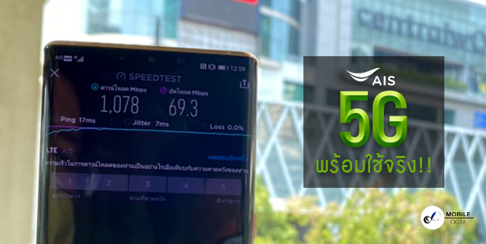 ทางทีมงานได้เดินทางไปทดสอบ AIS 5G ด้วยเครื่องและซิมจริง พร้อมแพ็คเกจใข้งานจริงจาก AIS ณ ใจกลางเมืองกรุงเทพฯ ใน 4 สถานที่ด้วยกัน มาดูกันว่า AIS 5G จะแรงแค่ไหน? เริ่มที่