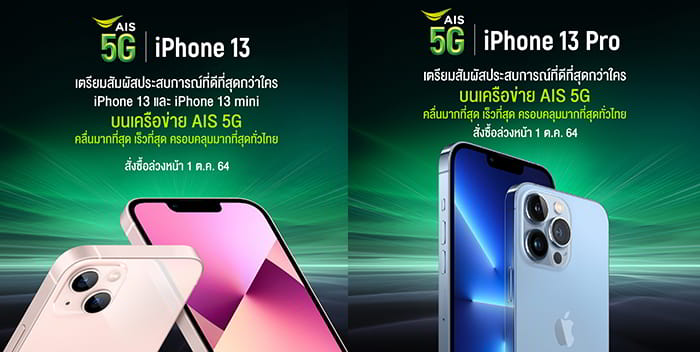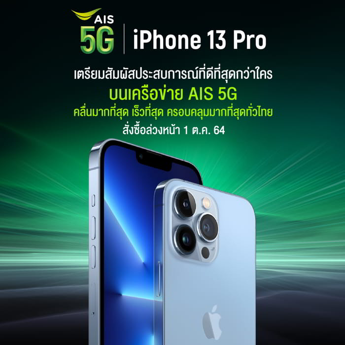 ลูกค้าสามารถสั่งซื้อ iPhone 13 รุ่นใหม่ล่วงหน้าได้ตั้งแต่วันที่ 1 ตุลาคม 2564 และวางจำหน่ายในวันที่ 8 ตุลาคม 2564 ดูรายละเอียดราคาได้ที่ https://www.ais.th/apple/iphone-13-pro/