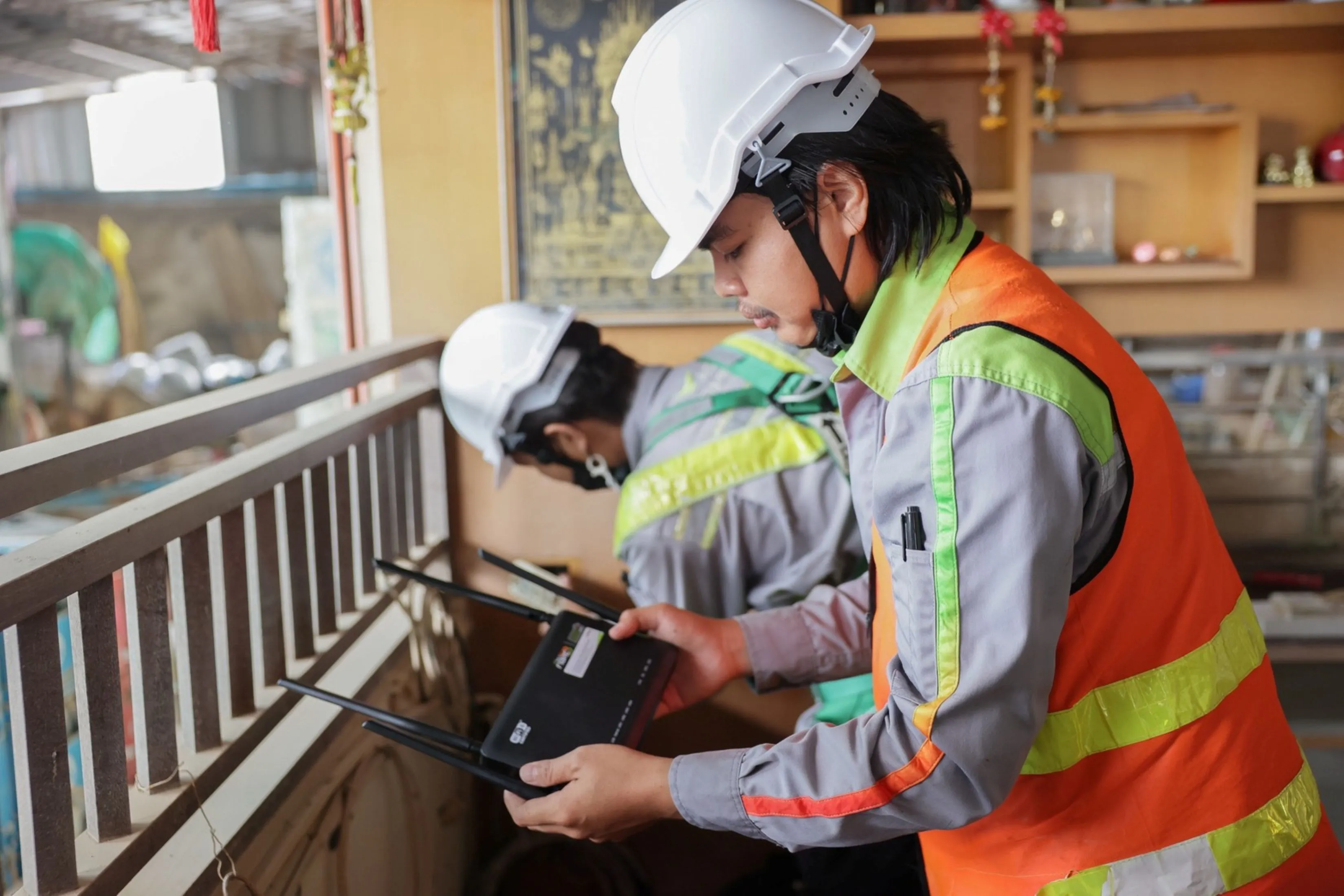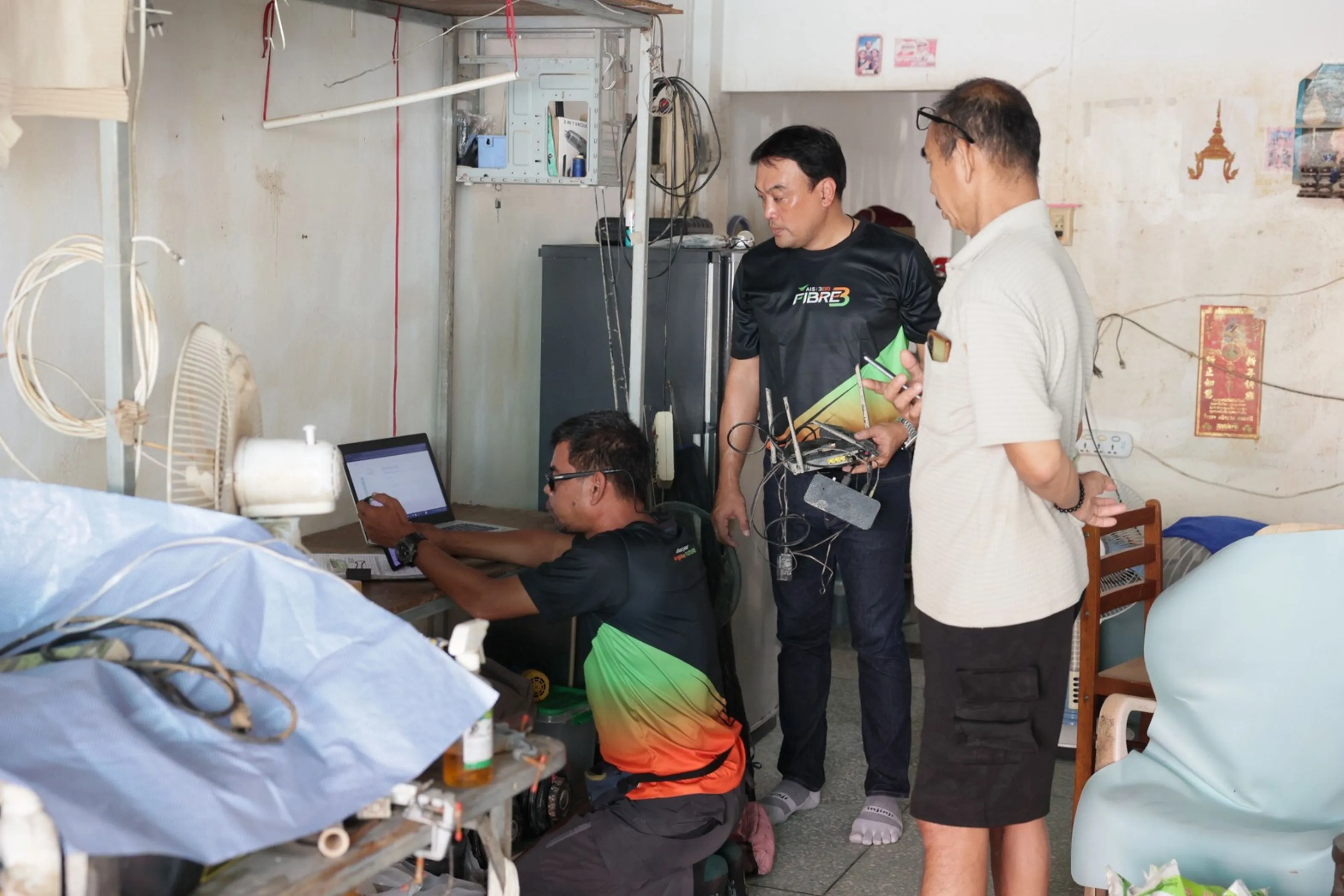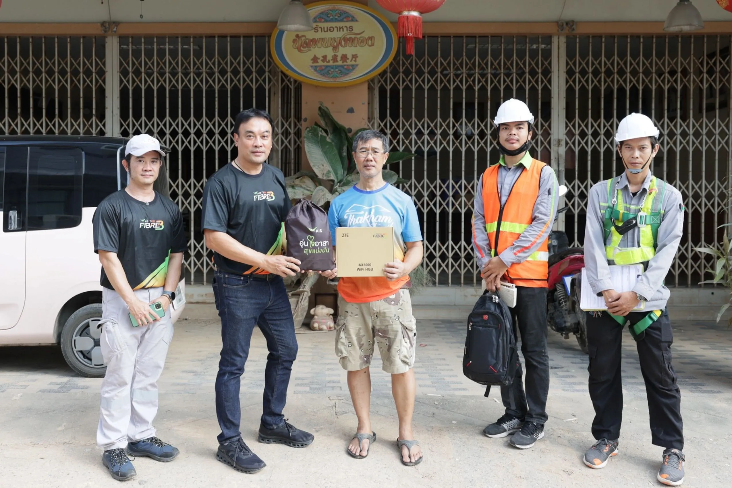 ทีมงานจึงเร่งฟื้นฟูโครงข่ายอินเทอร์เน็ตบ้านไฟเบอร์ให้กลับมาใช้งานได้อย่างทั่วถึง โดยทีมงานลงพื้นที่ถึงหน้าบ้านลูกค้า ตรวจเช็กสัญญาณ เปลี่ยนอุปกรณ์ที่ชำรุดจากน้ำท่วม ทั้ง Router และกล่อง AIS PLAYBOX ให้พร้อมใช้งานทันที