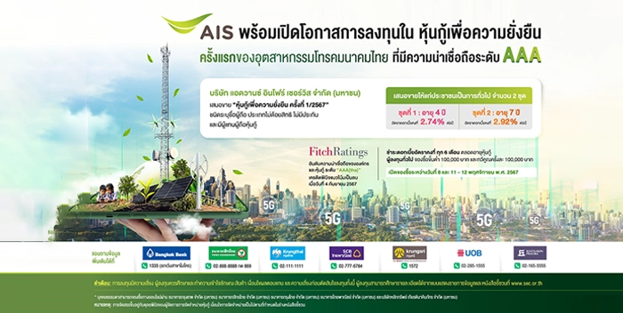 โดยเมื่อวันที่ 29 ตุลาคม 2567 บริษัทฯ ได้เปิดแสดงความจำนง (Bookbuilding) ในการลงทุนซื้อหุ้นกู้แก่ผู้ลงทุนสถาบัน และผู้ลงทุนสหกรณ์ออมทรัพย์ ซึ่งมีผู้ลงทุนให้ความสนใจอย่างล้นหลามเกินกว่าที่ตั้งเป้าหมายไว้ถึง 2 เท่า ตอกย้ำถึงความเชื่อมั่นของนักลงทุนที่มีต่อ AIS ที่คงความเป็นผู้นำในทุกด้าน การมีสถานะทางการเงินที่มีความมั่นคง