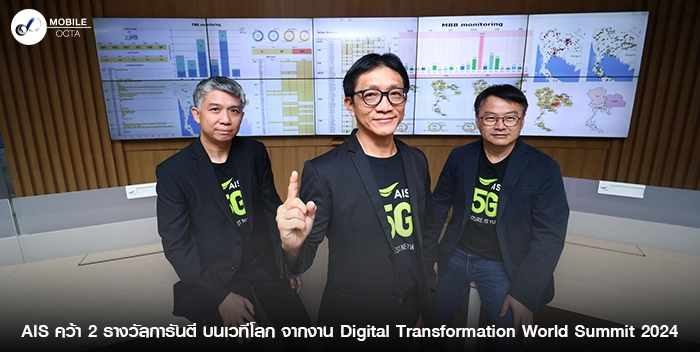 AIS ยืนหนึ่งบนเวทีโลกอีกครั้ง คว้า 2 รางวัลอันทรงเกียรติจากงาน Digital Transformation World Summit 2024 ซึ่งจัดโดย TM Forum สมาคมระดับโลกที่รวบรวมผู้ให้บริการและซัพพลายเออร์ในอุตสาหกรรมโทรคมนาคม
