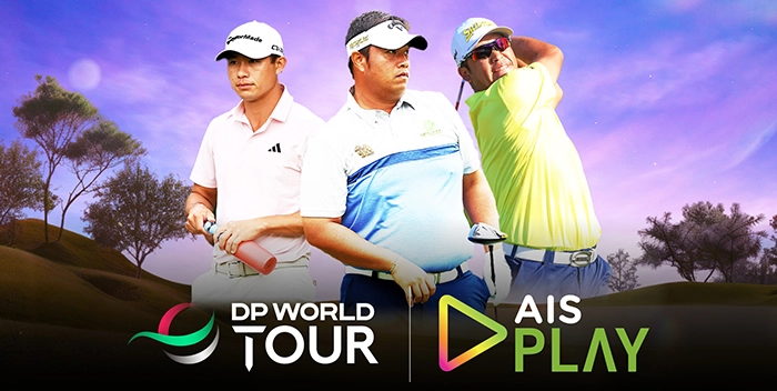 ลูกค้า AIS สามารถรับชมการแข่งขันกอล์ฟ DP World Tour ในแบบเอ็กซ์คลูซีฟ (Exclusive) ในปี 2026 ผ่าน AIS PLAY เพียงเลือกสมัคร 1 ใน 3 แพ็กเกจมัดรวบคอนเทนต์เพื่อคอกีฬา