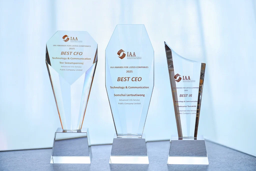เอไอเอส ตอกย้ำผู้นำอุตสาหกรรมโทรคมนาคมไทย ด้วยความแข็งแกร่งครบทุกมิติ คว้า 3 รางวัลจากสมาคมนักวิเคราะห์การลงทุน ในงาน IAA Awards for Listed Companies 2025 ในหมวดอุตสาหกรรมเทคโนโลยีและสื่อสาร ต่อเนื่องเป็นปีที่ 5 ใน 3 หมวดรางวัลด้วยกัน