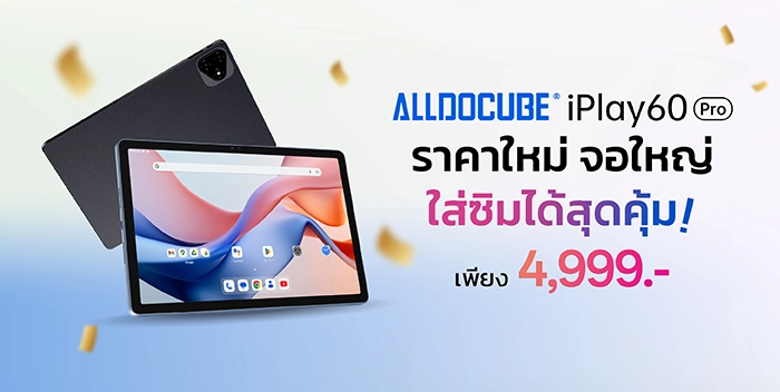 Alldocube มอบราคาพิเศษครั้งนี้เพื่อส่งต่อความสุขเป็นของขวัญส่งท้ายปีเก่าต้อนรับปีใหม่ 2026 ให้ลูกค้าได้สัมผัสแท็บเล็ตจอใหญ่ ใช้งานลื่นใส่ซิมโทรได้เพียง 4,999 บาท จัดเต็มขนาดนี้ ห้ามพลาด! เป็นเจ้าของ Alldocube iPlay 60 Pro ได้ที่ช่องทางออฟไลน์ ร้าน BaNANA และช่องทางออนไลน์ Shopee LAZADA และ TikTok