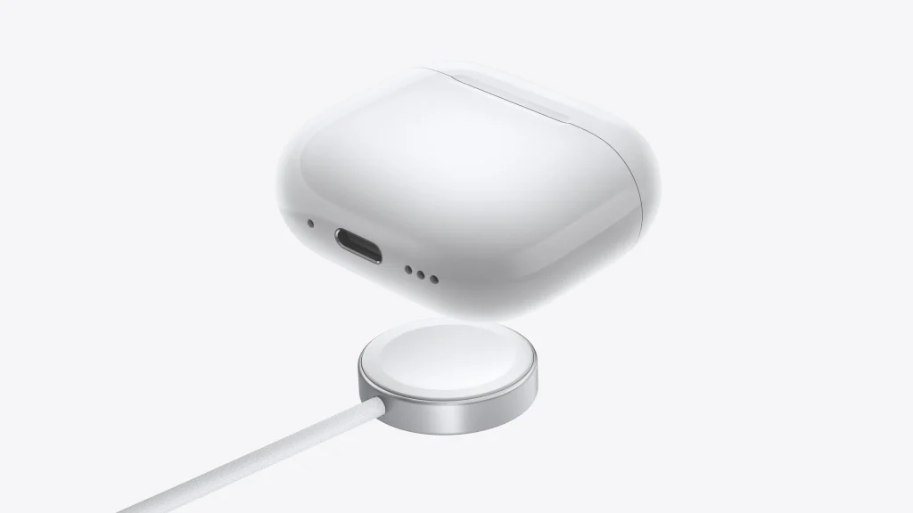 เพื่อความสะดวกสบายยิ่งขึ้น เคสชาร์จมาพร้อมกับดีไซน์ที่เล็กกว่ารุ่นก่อนถึง 10% พร้อมช่องชาร์จแบบ USB-C พร้อมแบตเตอรี่ที่รองรับการใช้งานได้นานสูงสุด 30 ชั่วโมง1ส่วนลูกค้าที่เลือก AirPods 4 พร้อม ANC ยังสามารถชาร์จด้วยที่ชาร์จสำหรับ Apple Watch หรือที่ชาร์จที่ได้รับการรับรองมาตรฐาน Qi เพิ่มเติมจาก สายชาร์จ USB-C และด้วยความกว้างเพียง 50 มม. จึงเป็นเคสชาร์จที่เล็กที่สุดในอุตสาหกรรมที่สามารถชาร์จแบบไร้สายได้