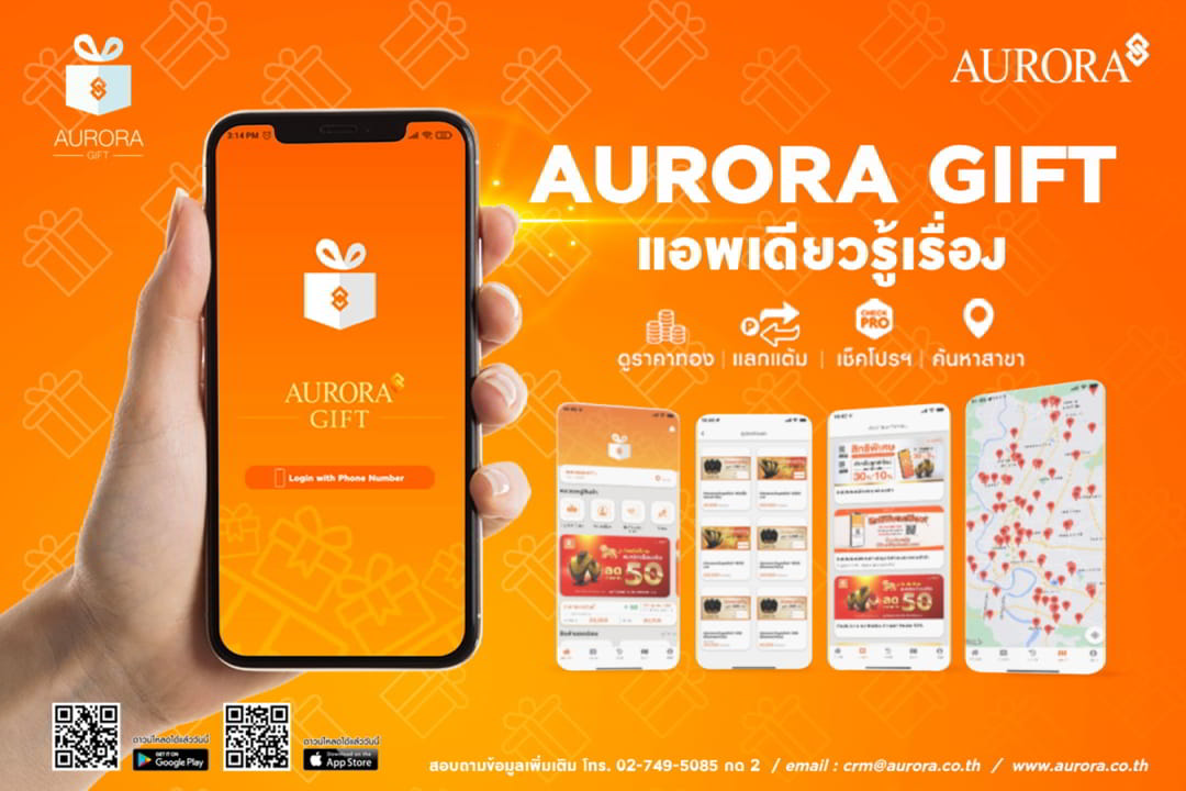 ล่าสุด เราได้พัฒนาแอปพลิเคชั่นที่พร้อมเป็นทุกอย่างเพื่อผู้ใช้งานยุคดิจิทัล รวมทั้งเติมเต็มความต้องการด้วยประสบการณ์ความสุขรูปแบบใหม่ๆ โดยให้แอปพลิเคชั่น “AURORA GIFT Application” กลายเป็นศูนย์รวมไลฟ์สไตล์แบบใหม่ ที่ให้ลูกค้าสามารถสัมผัสความสนุก และพลิกประสบการณ์การซื้อทองแบบเดิมสู่มิติใหม่ เพื่อมอบความคุ้มค่าผ่านการคืนกำไรให้ลูกค้า ทั้งแบบกิจกรรมไลฟ์สไตล์ สินค้าพริวิเลจ และโปรโมชันสุดคุ้มเพียบ”