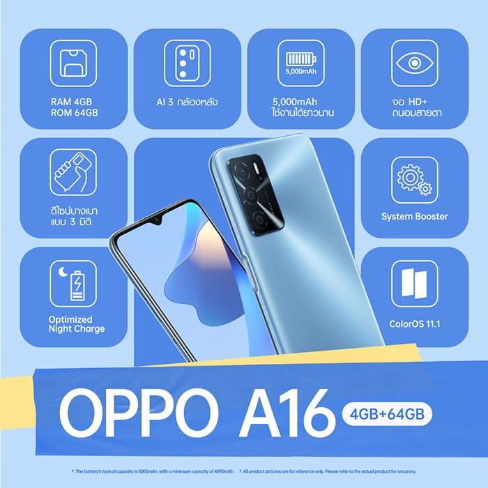 รายละเอียดผลิตภัณฑ์เพิ่มเติมที่https://www.oppo.com/th/smartphones/series-a/a16/