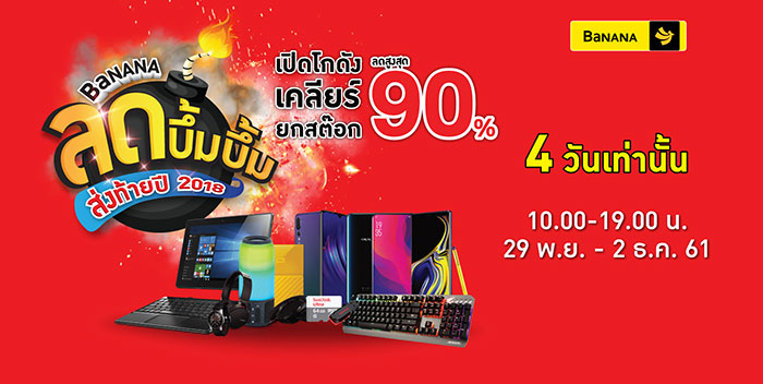 BaNANA Store ร้านค้าไอทีอันดับ 1 จัดโปรแรง ลดบึ้มบึ้ม ส่งท้ายปี 2018 เปิดโกดังเคลียร์ยกสต๊อกสินค้าทั้ง Smartphone, IT และ Gadget กว่า 100 แบรนด์ดังลดสูงสุด 90%
