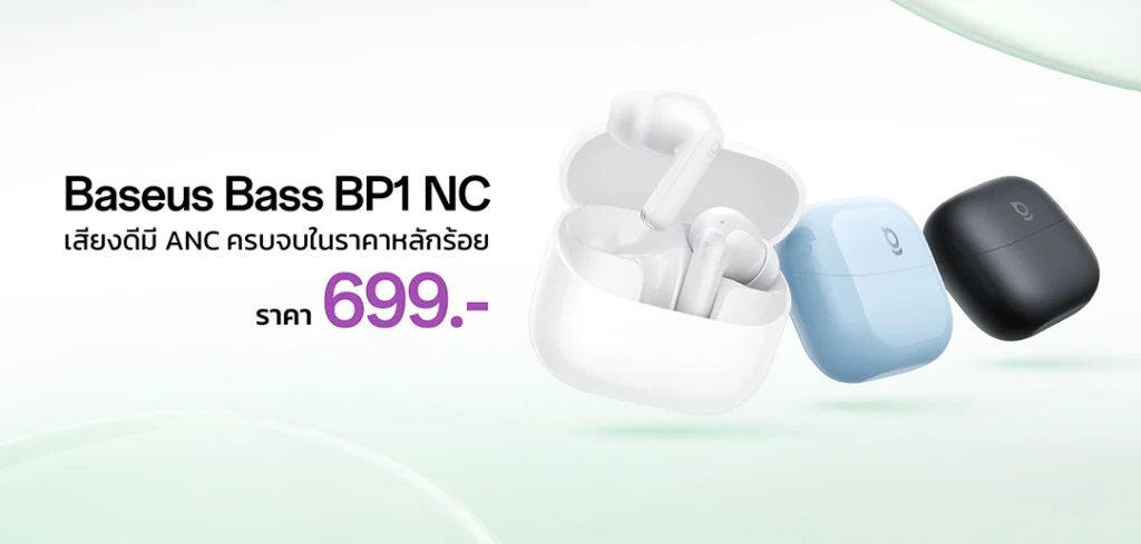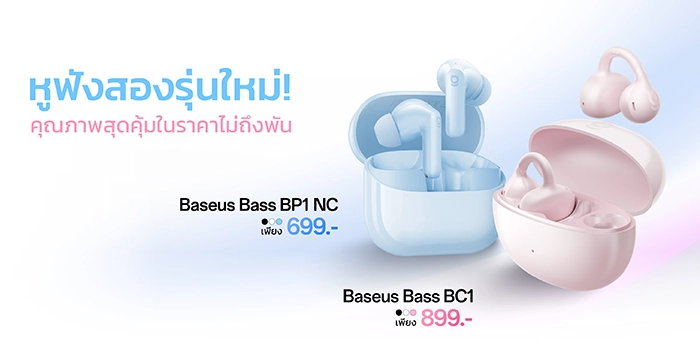 ห้ามพลาด! สัมผัสคุณภาพเสียงสุดว้าวของ Baseus Bass BP1 NC เสียงดีมี ANC เพียง 699 บาท และ Baseus Bass BC1 ดีไซน์เกี่ยวหูเท่อินเทรนด์ เพียง 899 บาท ได้แล้ววันนี้ ผ่านช่องทางออนไลน์ LAZADA, Shopee และ TikTok พร้อมส่วนลดสุดพิเศษอีกมากมาย