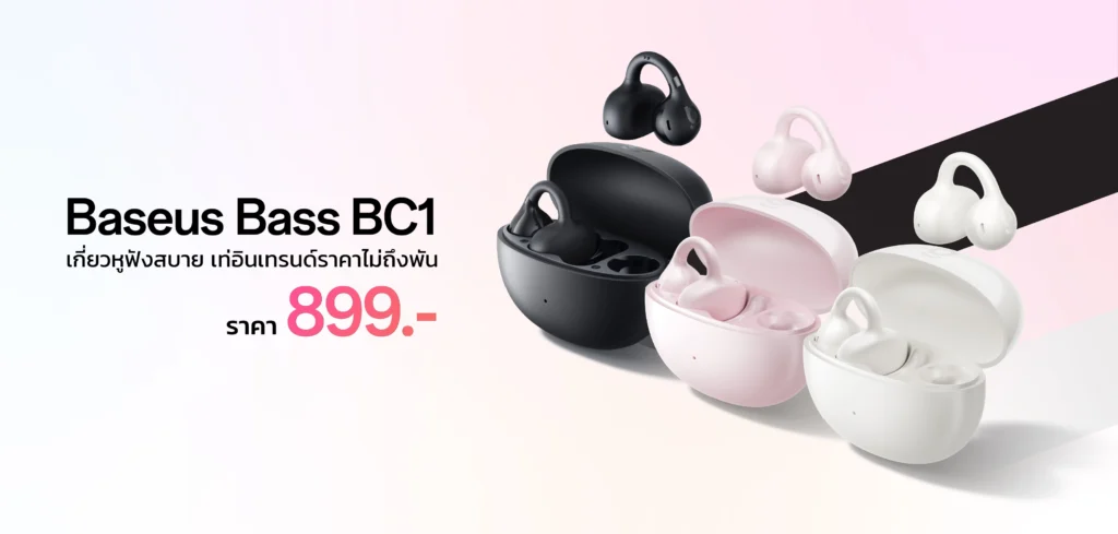 Baseus Bass BC1 หูฟัง Open-Ear ดีไซน์ใหม่สุดฮิตใส่สบายไม่เจ็บหู ตอบรับเทรนด์แฟชั่นและสุขภาพ เหมาะกับสายแฟชั่น