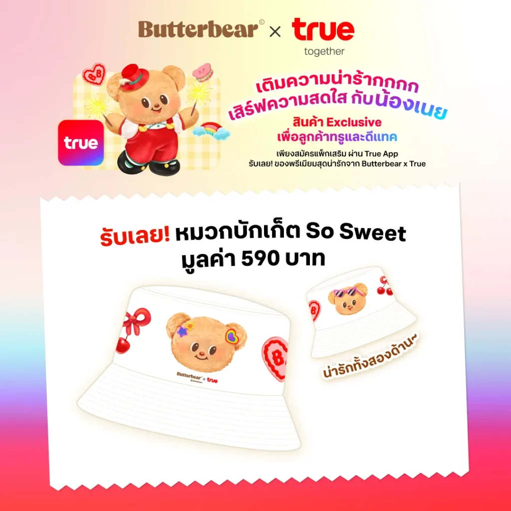 แฟนคลับน้องเนยเตรียมใจละลาย… ทรู คอร์ปอเรชั่น มอบประสบการณ์สุดพิเศษและสร้างความสุขให้กับลูกค้าคนสำคัญ จับมือ Butterbear ไอดอลสาวชื่อดังแถวหน้าของไทยกับแคมเปญ Butterbear x True เติมความน่ารัก เสิร์ฟความสดใส ในสไตล์เอกลักษณ์เฉพาะตัว ส่งคอลเล็กชันของพรีเมียมน่ารักเกินต้านจากน้องเนย