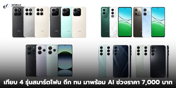 วันนี้เราจึงจะพามาเจาะลึก 4 สมาร์ตโฟนรุ่นใหม่ที่กำลังลงสนามในเรทราคาประมาณ 7,000 บาท ทั้ง HONOR X7d Series, OPPO A5 Series, Redmi Note 14 5G และ Samsung A16 5G มาดูกันว่าใครจะตอบโจทย์นิยามใหม่นี้ได้ดีที่สุด