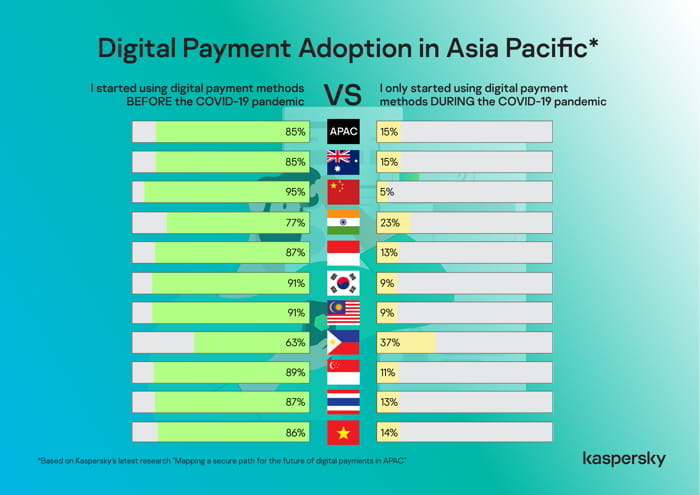 ความปลอดภัยและความสะดวกสบายได้กระตุ้นให้ผู้ใช้ในภูมิภาคเอเชียแปซิฟิกหันมาใช้เทคโนโลยีทางการเงินมากขึ้น ผู้ตอบแบบสอบถามมากกว่าครึ่งระบุว่าได้เริ่มใช้วิธีการชำระเงินดิจิทัลในช่วงโควิดระบาด เนื่องจากปลอดภัยและสะดวกกว่าการทำธุรกรรมแบบเห็นหน้ากัน