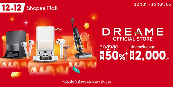 Dreame แบรนด์เครื่องใช้ไฟฟ้าชั้นนำระดับโลก เตรียมเป็นเจ้าของเครื่องใช้ไฟฟ้าและอุปกรณ์เสริมทำความสะอาดรุ่นยอดนิยมจาก Dreame กับโปรโมชัน 12.12 Birthday Sale จาก Shopee พร้อมรับส่วนลดสุดพิเศษส่งท้ายปีและเซอร์ไพรส์แบบจัดเต็ม ลดราคาครั้งใหญ่ส่งท้ายปี