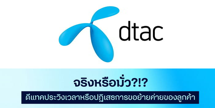 ตอบ ไม่เป็นความจริง ดีแทคไม่เคยใช้เป็นข้ออ้างในการไม่ดำเนินการย้ายค่ายให้ลูกค้า ดีแทคต้องการรักษาผลประโยชน์ลูกค้ากรณีถ้ามีเครดิตคงเหลือในระบบเติมเงิน ดังนั้น ถ้าลูกค้ารับทราบและประสงค์จะดำเนินการต่อดีแทคไม่เคยประวิงเวลา