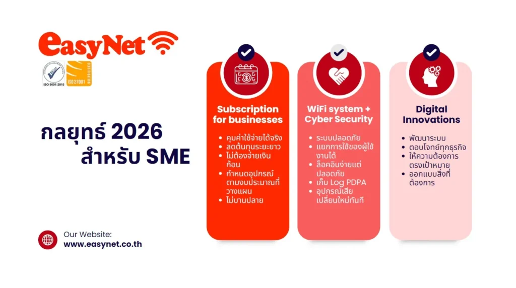 อย่างไรก็ตาม ท่ามกลางการเติบโตนี้ SME ไทยกว่า 3.2 ล้านราย ยังคงเผชิญกับข้อจำกัดด้านงบประมาณลงทุน (CAPEX) ที่สูงขึ้นตามราคาฮาร์ดแวร์ทั่วโลก ในปีนี้ EasyNet จึงขอเป็นตัวเปลี่ยนเกม (Game Changer) ด้วยการเปลี่ยนค่าใช้จ่ายก้อนโตให้กลายเป็นรายจ่ายรายเดือนที่ควบคุมได้ (OPEX) ภายใต้แนวคิด ‘ใช้แค่ไหน จ่ายแค่นั้น’ เพื่อให้ธุรกิจเติบโตได้อย่างไร้ขีดจำกัด