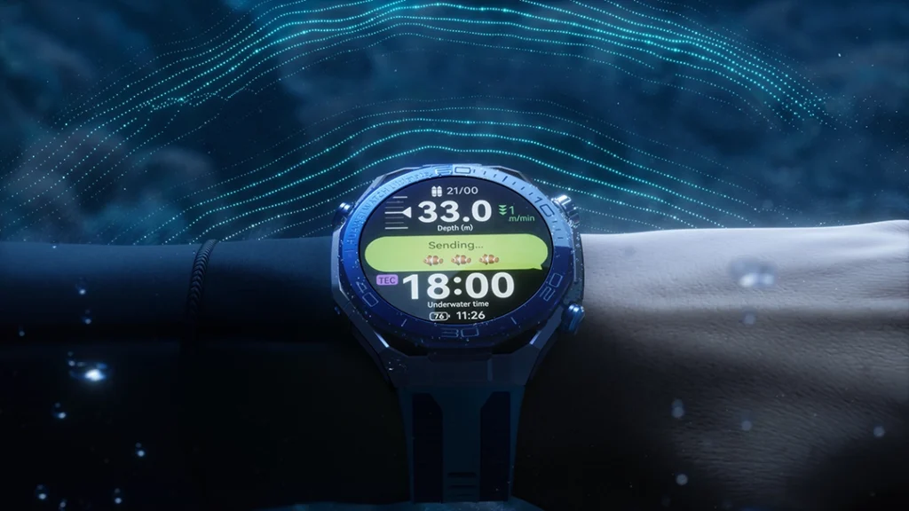 HUAWEI WATCH Ultimate 2 นับเป็นสมาร์ทวอทช์แรกที่รองรับการส่งข้อความขณะอยู่ใต้น้ำ โดยตัวสมาร์ทวอทช์มีอุปกรณ์โซนาร์ขนาดเล็กที่ทำให้ผู้ใช้สามารถส่งข้อความไปยังสมาร์ทวอชท์เครื่องอื่นๆ ที่อยู่ในรัศมี 30 เมตรได้ และยังสามารถติดต่อกับเพื่อนๆ ร่วมแก๊งดำน้ำได้มากถึง 50 คน โดยเลือกข้อความและอีโมจิที่มักใช้บ่อยได้กว่า 50 รายการ หรือสามารถปรับข้อความเองได้ด้วยเช่นกัน