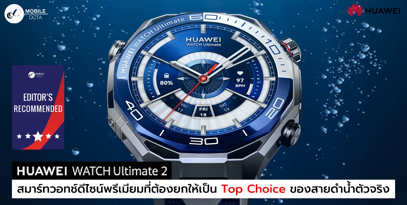 นับเป็นก้าวใหม่ของสมาร์ทวอทช์กับเทคโนโลยีการดำน้ำและดูแลสุขภาพจากหัวเว่ย เมื่อสมาร์ทวอทช์รุ่นใหม่ HUAWEI WATCH Ultimate 2 เปิดตัวมาด้วยเทคโนโลยีดำน้ำได้ถึง 150 เมตร และยังรองรับระบบสื่อสารใต้น้ำด้วยโซนาร์ ส่งข้อความหรือขอความช่วยเหลือฉุกเฉินจากใต้น้ำได้ โดยวางจำหน่ายแล้วที่ราคาเริ่มต้น 29,990 บาท
