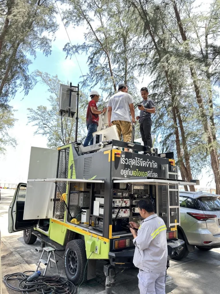 AIS ก็ยังเข้าเสริมศักยภาพโครงข่ายสื่อสารเต็มกำลังและเพิ่มรถสถานีฐานเคลื่อนที่ (Mobile Base Station Car) พร้อมนำ AI และ Autonomous Network มาช่วยมอนิเตอร์ปริมาณการใช้งานในการบริหารจัดการเครือข่าย เพื่อให้สามารถแก้ปัญหา ดูแลคุณภาพเครือข่ายได้แบบ Real Time เรียบร้อยแล้วด้วย