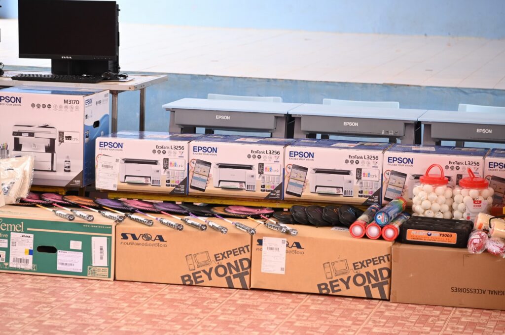 พร้อมกันนี้ เอปสันยังได้ส่งมอบอุปกรณ์ที่โรงเรียนมีความจำเป็นต้องใช้เพิ่มเติม ได้แก่ สีทาภายในและภายนอกอาคาร กระดานไวท์บอร์ด และอุปกรณ์กีฬาต่าง ๆ เพื่อช่วยฟื้นฟูสภาพแวดล้อมการเรียนรู้ของนักเรียนให้กลับมาใช้งานได้อย่างเหมาะสม