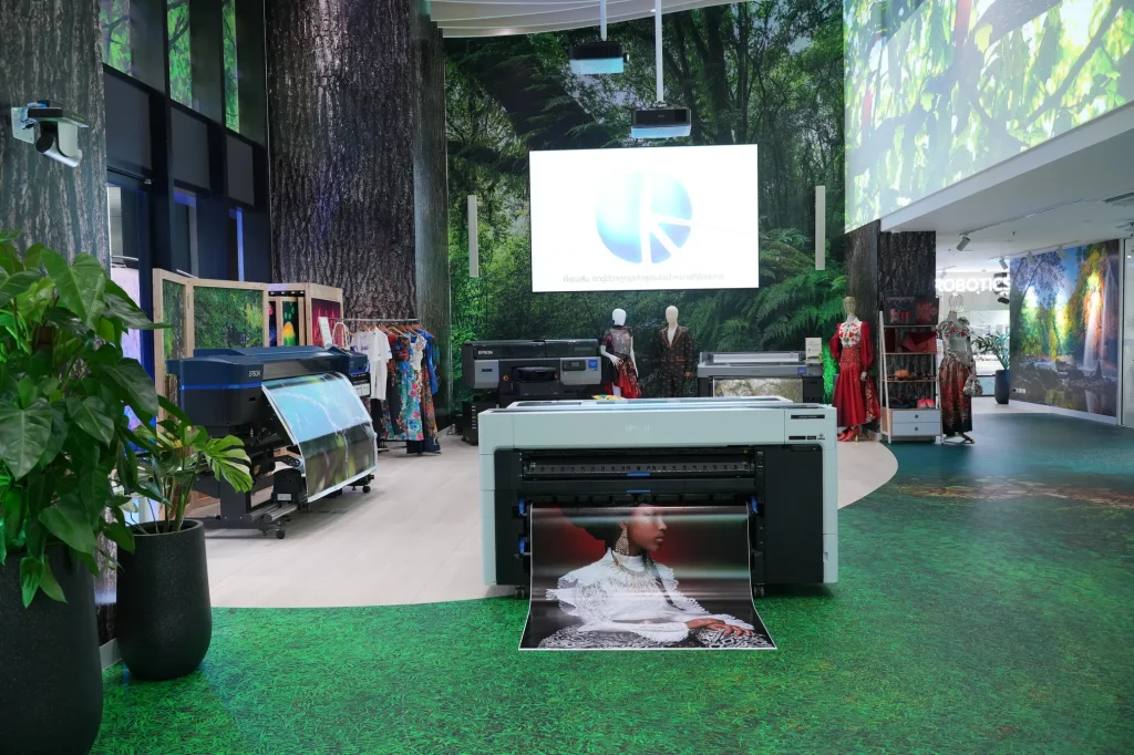 สำหรับสินค้าไฮไลท์ที่จัดแสดงในวันเปิดโซลูชั่น เซ็นเตอร์ ประกอบด้วยเครื่องพิมพ์สิ่งทอแบบ Direct-to-Garment รุ่น Epson Monnalisa ML-8000 ที่ใช้หมึก UltraChrome ฐานน้ำ เครื่องพิมพ์ป้ายขนาดใหญ่ รุ่น Epson SureColor SC-S60670 ที่ใช้หมึก Eco-Solvent หรือรุ่น SureColor SC-R5030L ที่ใช้หมึกเรซิ่น ซึ่งหมึกที่ใช้ในเครื่องพิมพ์เชิงพาณิชย์และอุตสาหกรรมทั้งสามประเภทของเอปสันล้วนแต่ไร้กลิ่น ไร้สารพิษ ช่วยลดมลพิษทางอากาศ และได้รับการรับรองด้านความปลอดภัยและเป็นมิตรต่อสิ่งแวดล้อม จากมาตรฐานระดับโลก อาทิ Greenguard Gold, AgBB และ French-VOC A+ Class เป็นต้น