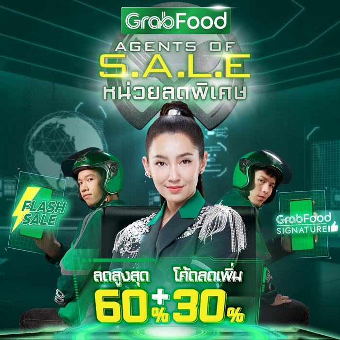 แกร็บ ประเทศไทย ผู้นำซูเปอร์แอปในภูมิภาคเอเชียตะวันออกเฉียงใต้ ส่งแคมเปญเอาใจสายฟู้ดดี้ ‘GrabFood AGENTS OF S.A.L.E. หน่วยลดพิเศษ’ ยกทัพโปรโมชั่นมากมายรวมกว่า 10,000 ดีล พร้อมยกระดับจุดเด่นเมนูพิเศษที่มีเฉพาะบนแกร็บฟู้ด (Signature Menu) กว่า 550 เมนู จากร้านชื่อดังทั่วไทย
