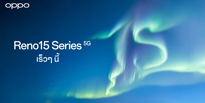 มาร่วมติดตามประสิทธิภาพ ของ OPPO Reno15 Series 5G ถ่ายพอร์ตเทรตสวยด้วยการอัปเกรดไปอีกขั้น และ OPPO IoT สุดอัจฉริยะจะมาพร้อมกับเทคโนโลยีอะไรเพิ่มเติมอีกบ้าง รอติดตามพร้อมกัน ห้ามพลาด เร็วๆ นี้!