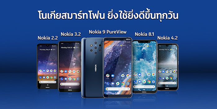 ได้แก่ Nokia 9 PureView (6/128), Nokia 8.1 (6/128), Nokia 4.2 (3/32), Nokia 3.2 (3/32), Nokia 2.2 (3/32) และ Nokia 2.2 (2/16) ผ่านทางช้อปปี้แพลตฟอร์ม ด้วยกระแสตอบรับและยอดสั่งซื้ออันล้มหลาม