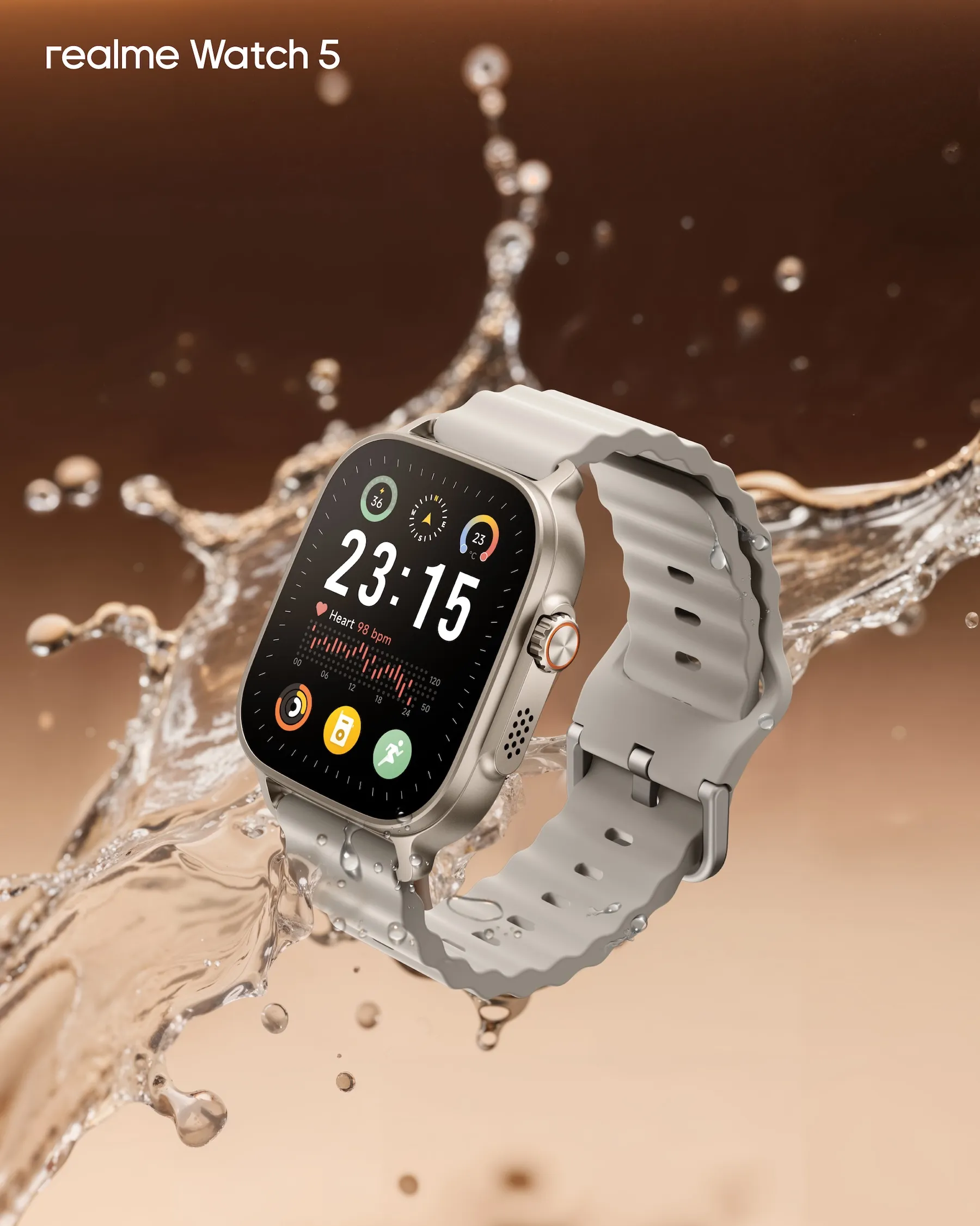 - realme Watch 5 สมาร์ทวอตช์ผู้ช่วยคนเก่ง มองชัดเต็มตาด้วยหน้าจอ AMOLED ขนาด 1.97 นิ้ว และใช้งานได้ยาวนานสูงสุด 14 วัน ราคา 1,999 บาท ที่สามารถพรีออเดอร์ได้แล้วตั้งแต่วันนี้เป็นต้นไป (รับสินค้าภายในวันที่ 24-28 ตุลาคม)