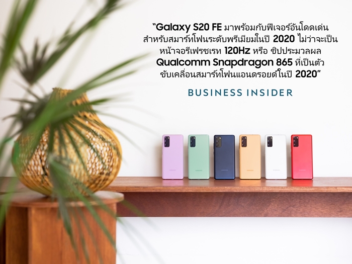 “Galaxy S20 FE มาพร้อมกับฟีเจอร์อันโดดเด่น สำหรับสมาร์ทโฟนระดับพรีเมียมในปี 2020 ไม่ว่าจะเป็นหน้าจอรีเฟรชเรท 120Hz หรือ ชิปประมวลผล Qualcomm Snapdragon 865 ที่เป็นตัวขับเคลื่อน