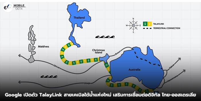 วันนี้ Google Cloud ประกาศเปิดตัว TalayLink สายเคเบิลใต้น้ำเส้นใหม่ที่เชื่อมระหว่างประเทศออสเตรเลียและไทย เพื่อยกระดับการเข้าถึง ความเสถียร และความยืดหยุ่นของการเชื่อมต่อดิจิทัลอย่างมีนัยสำคัญทั้งในภูมิภาคเอเชียแปซิฟิกและทั่วโลก