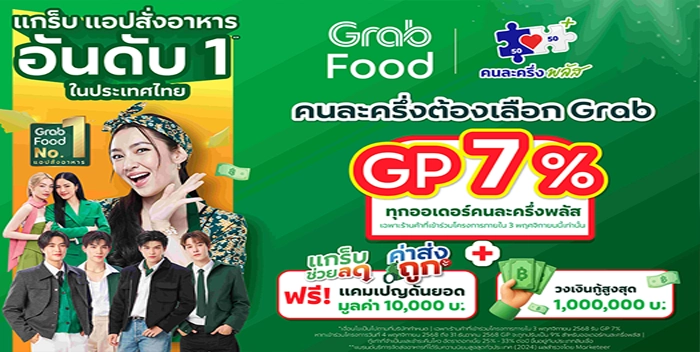 ** เงื่อนไขเป็นไปตามที่บริษัทฯ กำหนด ดูรายละเอียดเพิ่มเติมได้ที่ https://merchant.grab.com/th-th/blog/halfhalf25