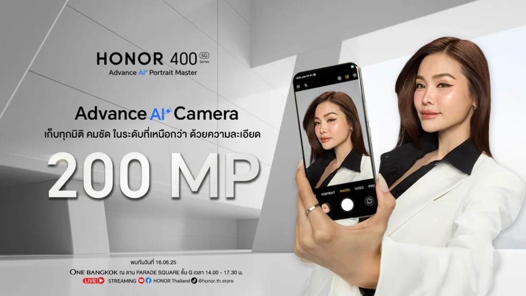 ตลาดสมาร์ตโฟนในประเทศไทยกำลังจะได้สัมผัสประสบการณ์ใหม่สุดตื่นตาตื่นใจกับการเปิดตัว HONOR 400 Series สมาร์ตโฟนรุ่นล่าสุดที่มาพร้อม Advance AI