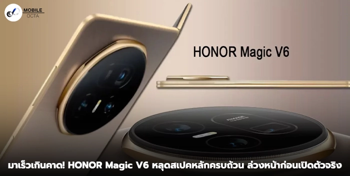 แม้ว่า HONOR เพิ่งจะเปิดตัว HONOR Magic V5 ไปเมื่อเดือนมิถุนายนที่ผ่านมา แต่ล่าสุดดูเหมือนว่าค่ายมือถือยักษ์ใหญ่รายนี้จะซุ่มพัฒนาทายาทรุ่นต่อไปอย่าง HONOR Magic V6 แล้ว โดยคาดว่าจะเปิดตัวในตลาดจีนช่วงกลางปี 2026 และล่าสุดแหล่งข่าวชื่อดังอย่าง Digital Chat Station ก็ได้ปล่อยข้อมูลสเปคหลุดชุดใหญ่ที่น่าตื่นเต้นออกมาให้เราได้เห็นกันก่อนใคร