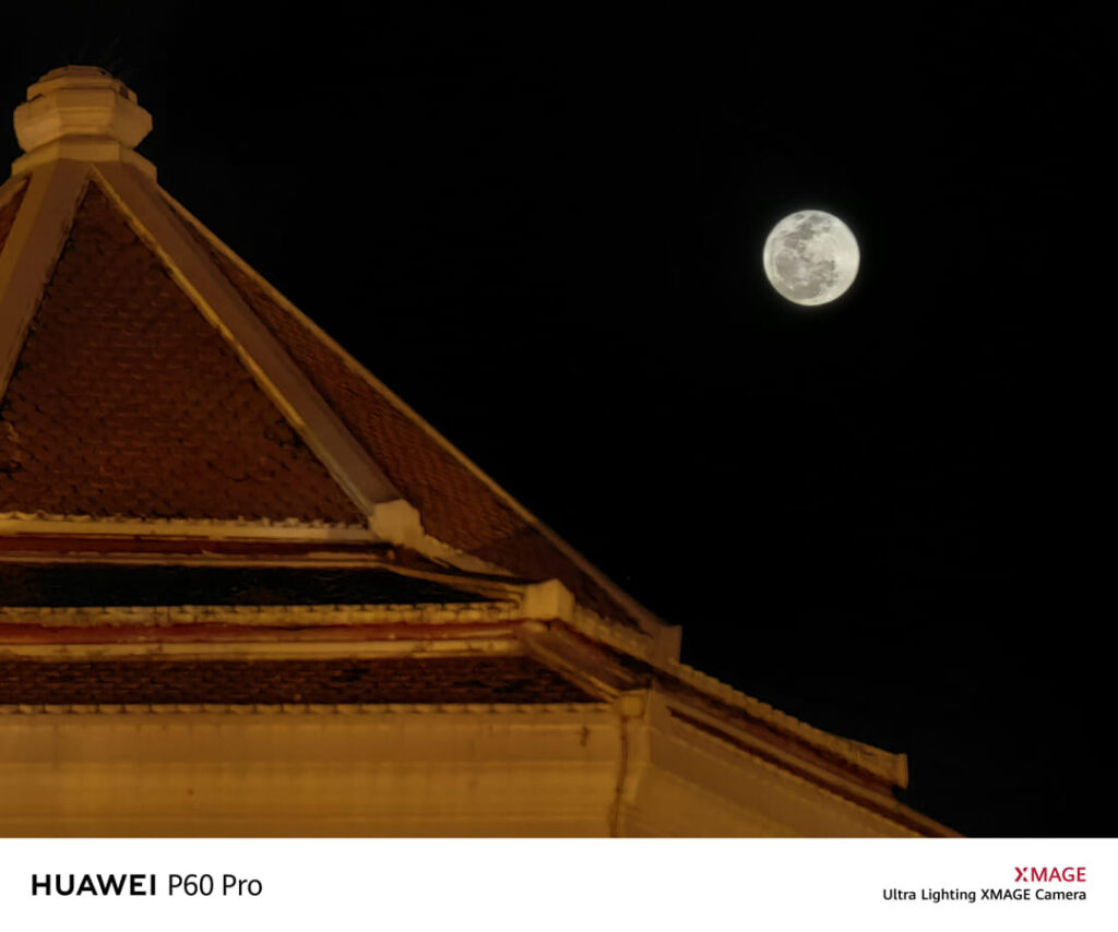 (ภาพถ่ายพระจันทร์ ณ วัดวัดโพธิ์ ที่ถ่ายโดยช่างภาพเพจ Tech Hangout ด้วย HUAWEI P60 Pro)
