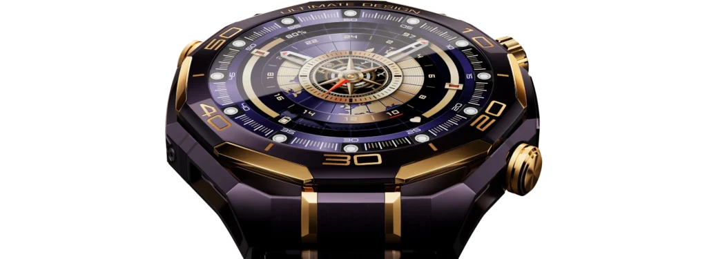 HUAWEI WATCH ULTIMATE DESIGN Royal Gold ใหม่นี้ไม่เพียงทลายขีดจำกัดทางสุนทรียศาสตร์ของสมาร์ทวอทช์และเทคโนโลยีบนอุปกรณ์สวมใส่ แต่ยังสร้างนิยามใหม่ให้กับสมาร์ทวอทช์ระดับไฮเอนด์ มอบประสิทธิภาพระดับมาสเตอร์พีซและสไตล์อันประณีตในทุกๆ วัน ใช้งานต่อเนื่องได้นานสูงสุด 11 วัน[5]
