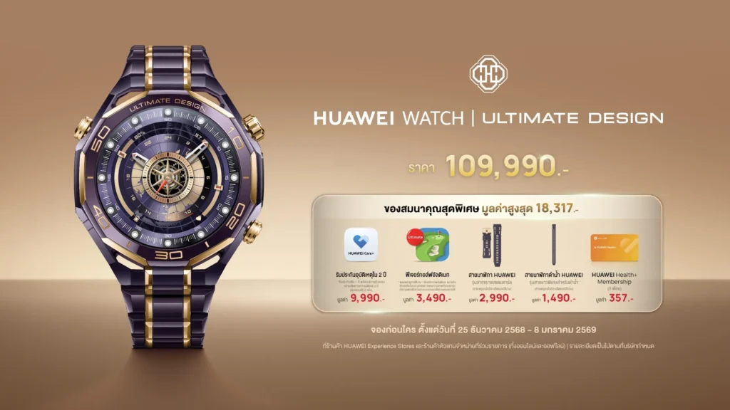 เมื่อสั่งจองตั้งแต่วันที่ 25 ธันวาคม 2568 ถึงวันที่ 8 มกราคม 2569 ผ่านหน้าร้าน HUAWEI Experience Store และตัวแทนจำหน่ายที่ร่วมรายการ รวมถึงร้านค้าอย่างเป็นทางการบนช่องทางออนไลน์ทั้ง HUAWEI Store, Lazada, Shopee และ TikTok Shop