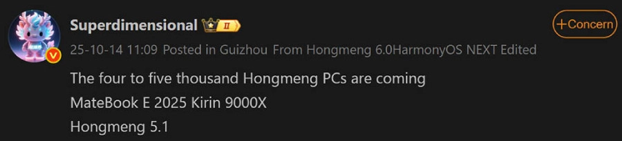 น่าสนใจว่า เมื่อสัปดาห์ที่แล้ว Superdimensional แหล่งข่าวอีกรายบน Weibo ได้กล่าวถึงว่า หัวเว่ยกำลังเตรียมเปิดตัวพีซีที่ใช้ระบบ HarmonyOS ในจีนชื่อว่า MateBook E 2025 ซึ่งข่าวหลุดใหม่จาก Digital Chat Station นี้ดูเหมือนจะเป็นการยืนยันข้อมูลดังกล่าว