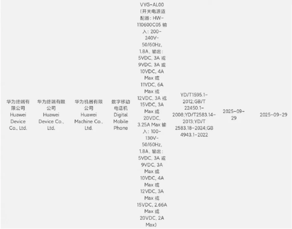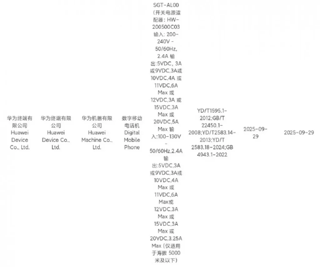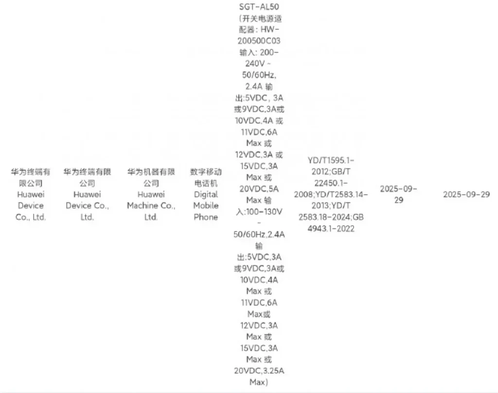 ข้อมูลการรับรองยังยืนยันถึงความเร็วในการชาร์จ โดย HUAWEI Mate 80 รุ่นพื้นฐานจะรองรับการชาร์จผ่านสายที่ 66W ในขณะที่รุ่น Pro และ Pro+ จะอัปเกรดไปใช้ความเร็วสูงสุดถึง 100W