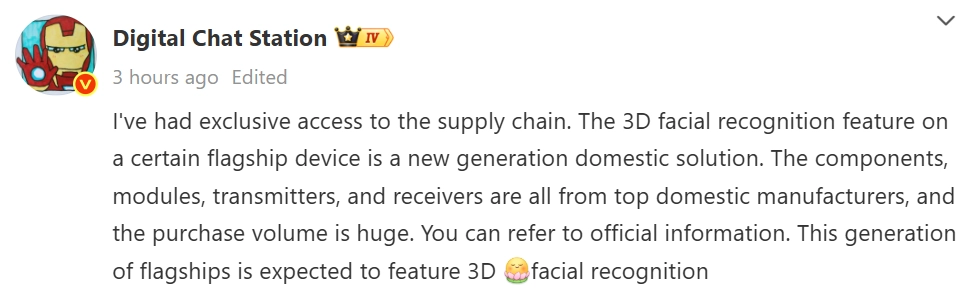 รายงานล่าสุดเปิดเผยว่า HUAWEI กำลังเร่งพัฒนาสมาร์ตโฟนเรือธง HUAWEI Mate 80 Series สำหรับตลาดในประเทศจีน และล่าสุด นักปล่อยข่าวหลุดที่น่าเชื่อถือ (Digital Chat Station) ได้บอกใบ้ว่า เรือธงประจำปีระดับท็อปนี้จะนำการยืนยันตัวตนด้วยใบหน้าแบบ 3D (3D Face Authentication) มาใช้ในทุกรุ่นของซีรีส์
