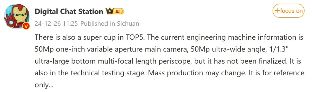 Digital Chat Station แหล่งข่าวหลุดสมาร์ตโฟนได้โพสต์ผ่านบัญชี Weibo ส่วนตัวระบุว่า HUAWEI Pura 80 Ultra จะมาพร้อมกล้องหลัง 3 ตัว ประกอบด้วยกล้องหลักความละเอียด 50 ล้านพิกเซล เซ็นเซอร์ขนาด 1 นิ้ว และรูรับแสงปรับได้, กล้องเลนส์ Ultra Wide ความละเอียด 50 ล้านพิกเซล และกล้องเลนส์ Periscope Telephoto “ขนาดใหญ่พิเศษ” พร้อมเซ็นเซอร์ขนาด 1/1.3 นิ้ว