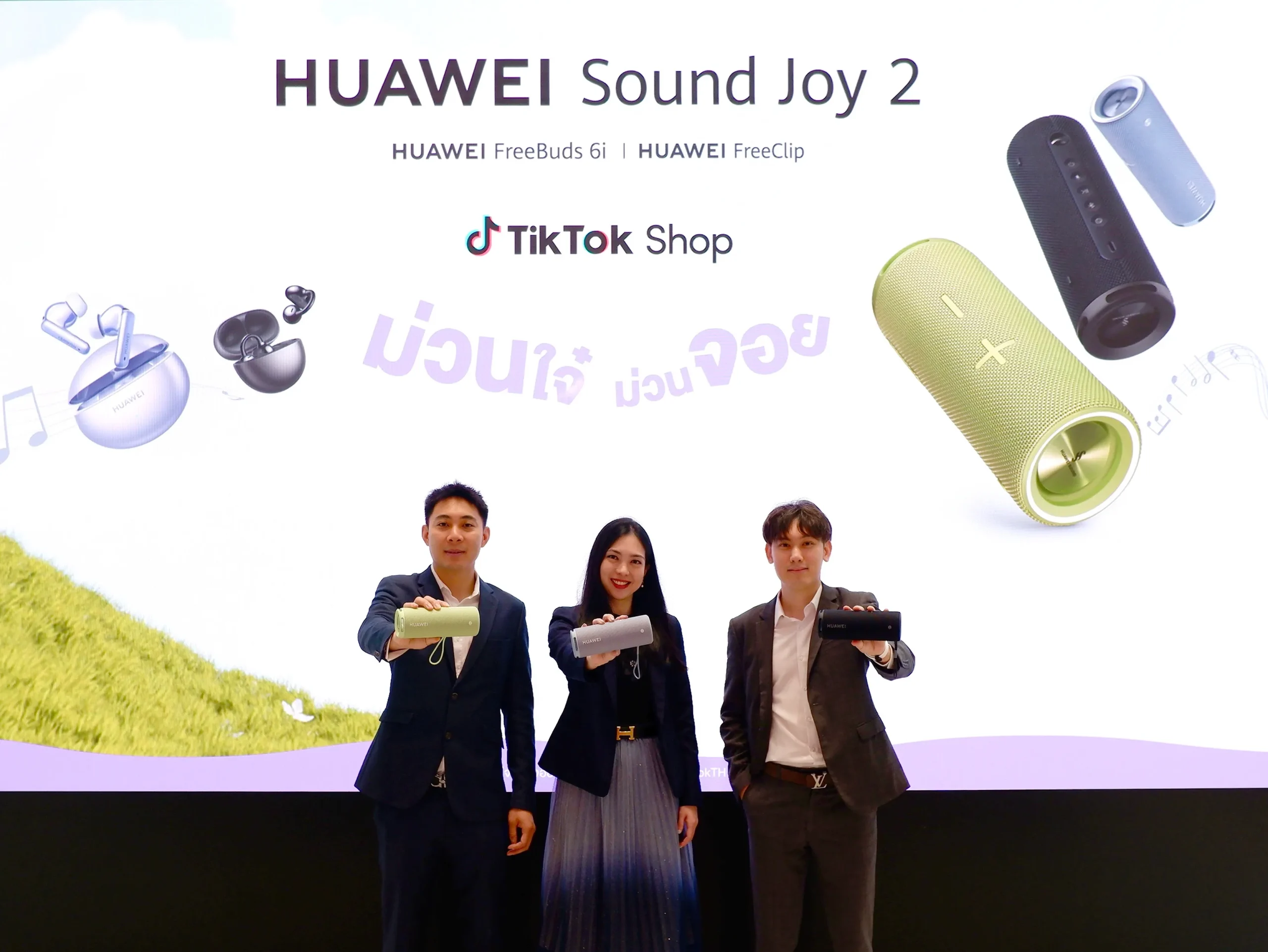 หัวเว่ย คอนซูมเมอร์ บิสสิเนส กรุ๊ป (ประเทศไทย) จับมือร่วมกับ TikTok Shop ประกาศการเปิดตัววางจำหน่าย HUAWEI Sound Joy 2 ลำโพงเสียงกระหึ่มด้วยลำโพง 4 ดอกดังสะใจ ป้องกันละอองนํ้าและฝุ่น IP67 ใช้ไปงาน ๆ ต่อเนื่อง 26 ชั่วโมง