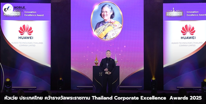 บริษัท หัวเว่ย เทคโนโลยี่ (ประเทศไทย) จํากัด ได้รับรางวัลพระราชทานในสมเด็จพระกนิษฐาธิราชเจ้า กรมสมเด็จพระเทพรัตนราชสุดาฯ สยามบรมราชกุมารี “Thailand Corporate Excellence Awards 2025” สาขาความเป็นเลิศด้านนวัตกรรมและการสร้างสรรค์สิ่งใหม่ๆ (Innovation Excellence) จากเวที TMA Excellence Awards 2025