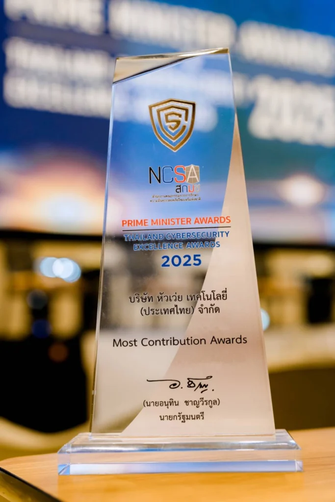 บริษัท หัวเว่ย เทคโนโลยี่ (ประเทศไทย) จำกัด ได้รับรางวัล Prime Minister Award: Thailand Cybersecurity Excellence Award 2025 ในหมวด “Most Contribution” ต่อเนื่องเป็นปีที่ 4 รางวัลนี้สะท้อนถึงความมุ่งมั่นอย่างต่อเนื่องของหัวเว่ย ประเทศไทยในการเสริมสร้างขีดความสามารถด้านความมั่นคงปลอดภัยไซเบอร์ของประเทศ พัฒนาบุคลากรดิจิทัล และสนับสนุนการเปลี่ยนผ่านสู่ยุคดิจิทัลของไทยอย่างมั่นคงและยั่งยืน