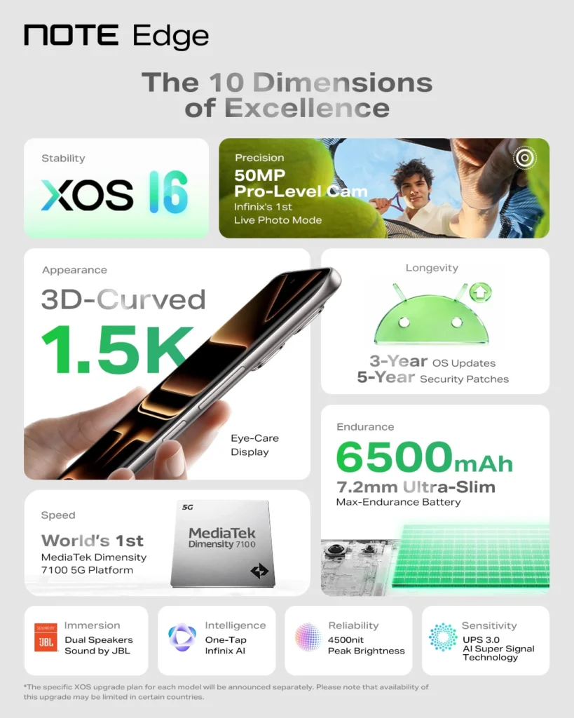 - ซอฟต์แวร์: รันบน XOS 16 (Android 16) ซึ่งถือเป็นรุ่นแรกของ Infinix