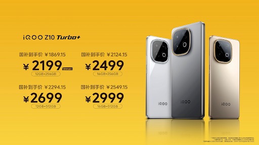 ทั้งนี้ iQOO Z10 Turbo+ มีให้เลือก 3 สีคือ Desert Gold, Polar Gray และ Cloud White โดยจะวางจำหน่ายแล้วที่ประเทศจีน ส่วนราคามีดังนี้