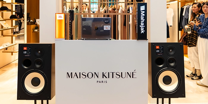 บริษัท มหาจักรดีเวลอปเมนท์ จำกัด ร่วมสนับสนุนลำโพงจาก JBL Classic Series JBL L100 และ JBL SA750 เพื่อถ่ายทอดเอกลักษณ์แห่งเสียงที่อยู่เหนือกาลเวลา ในงานเปิดตัวคอลเลคชันใหม่ของแบรนด์แฟชั่นสัญชาติฝรั่งเศส Maison Kitsuné ณ ศูนย์การค้า Emquarteir เมื่อวันที่ 7 สิงหาคมที่ผ่านมา